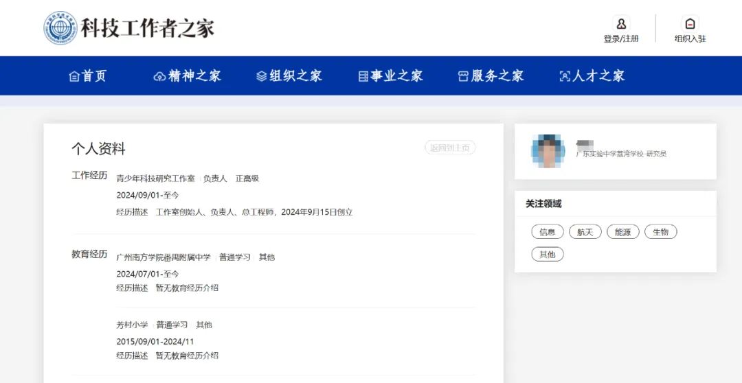 目前,“科技工作者之家”网站发布声明称,科技工作者之家个人注册信息由用户自行编辑,如信息内容不准确或不完善,与平台无关。
